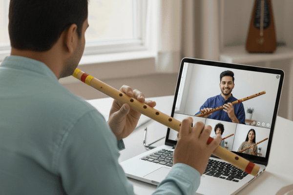 "Join our 'Flute Live Sessions' and hit all the right notes with expert guidance and interactive learning experiences. Elevate your flute playing to the next level!"